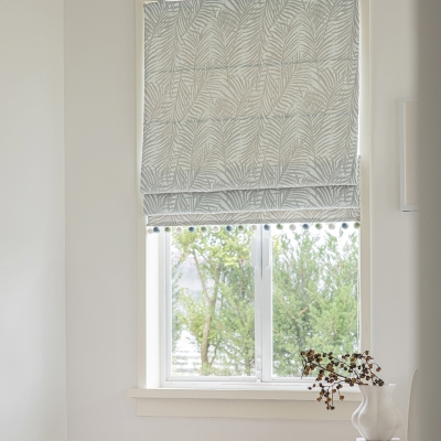 Explore Our Elegant PALMA Roman Shades!Crafted from luxurious chenille fabric with an intricate palm leaf jacquard pattern, these custom Roman shades bring the serene beauty of nature into your home. Each fold reveals the delicate interplay of texture and motif, creating a restful atmosphere that transforms your bedroom into a tranquil retreat.